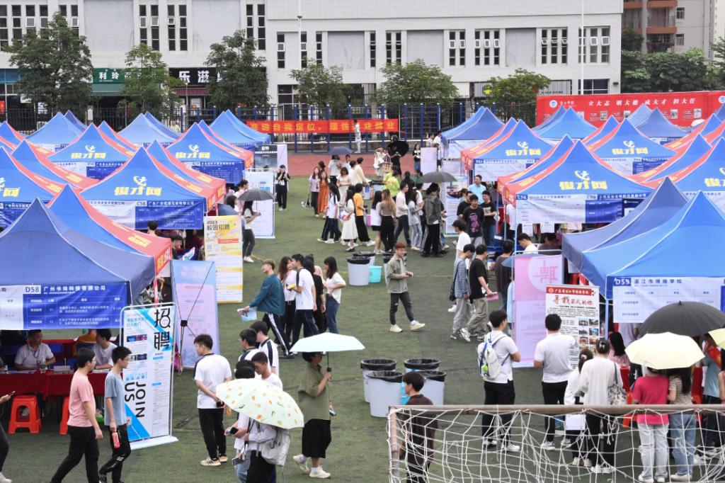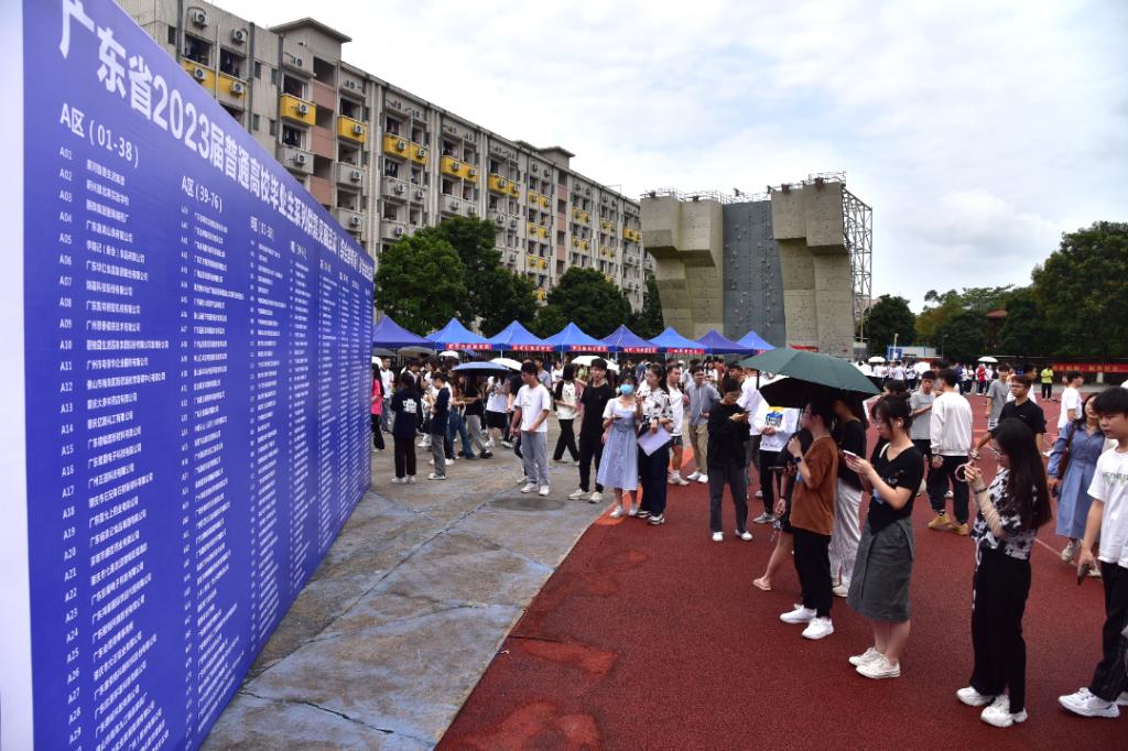 本网讯 4月15日,广东省2023届普通高校毕业生系列供需见面活动——综合类专场在我校第二运动场举行。本次招聘会以“线上+线下”双线融合,现场人流如织,气氛火热,三百多家企业求贤若渴,上万个岗位虚位以待。