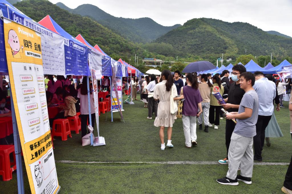 此次供需见面活动依托广东学生就业创业智慧服务平台,采用线上线下同步实现一站式、数字化供需有效对接,线上参会单位927家,提供38235个岗位,线下参会单位来自广州、深圳、佛山、肇庆等地共346家参加现场招聘,提供13726个岗位,包括中国能源建设集团、深圳理士电源、风华股份新能源、丽珠集团、青岛啤酒、星湖科技、李锦记食品、鼎湖山泉、恒兴集团等名优企业,涵盖教育业、智能制造、机械电子、医疗环保、IT互联网等行业,吸引了校内外近五千名学生入场。根据企业填写问卷调查,现场参会企业共收到简历3665份,达成初步意向1725份。