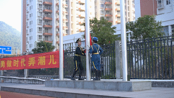庄严的国歌声响起,在全场师生的肃穆注视下,五星红旗缓缓升起,随风飘扬。