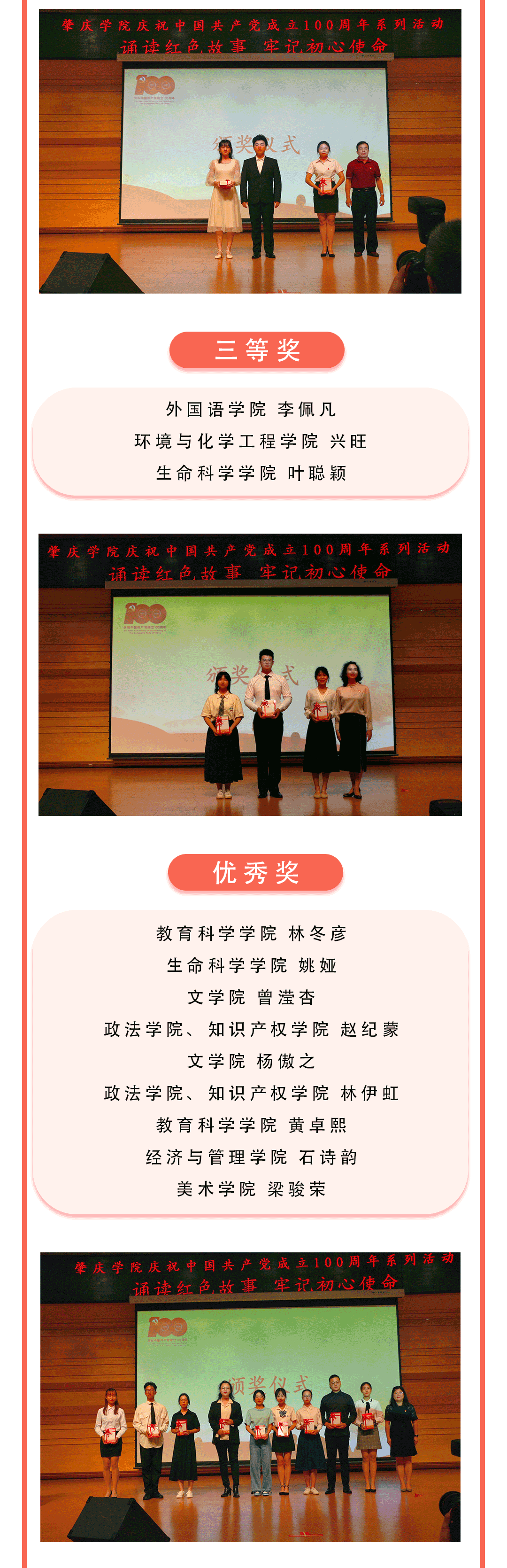 通过聆听选手们诵读红色经典故事,能够感受到中国共产党走过的光辉历程、取得的伟大成就、积累的宝贵经验。这些优秀共产党人不忘初心、砥砺奋进的先进事迹,激励着我们用光辉历史涵养初心使命,用红色文化赓续精神谱系,用信仰之光照亮前行的路。