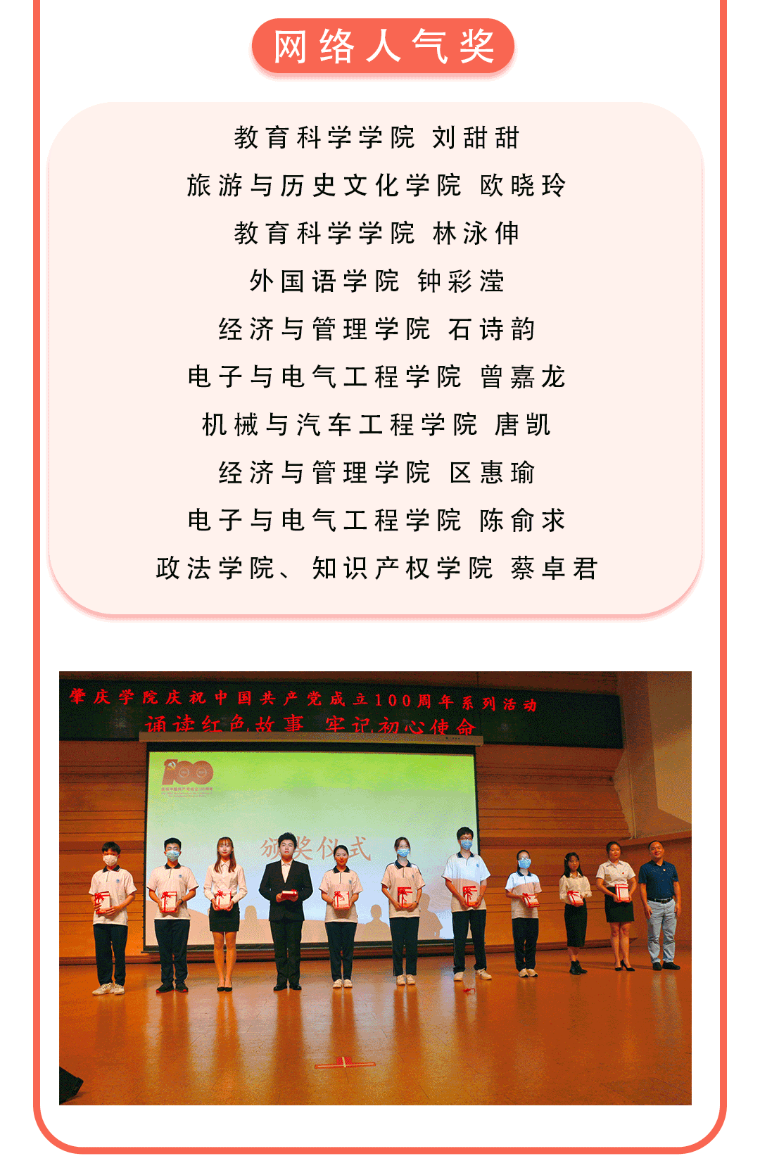本次活动由校党史学习教育领导小组主办,校团委、兰蕙书院、市朗诵协会协办,机械与汽车工程学院党委承办。副校长唐冬冬,校党委委员、组织部部长欧洪湛,兰蕙书院院长余淦新、机械与汽车工程学院党委书记田华出席。各学院师生代表共200余人在现场观看比赛。